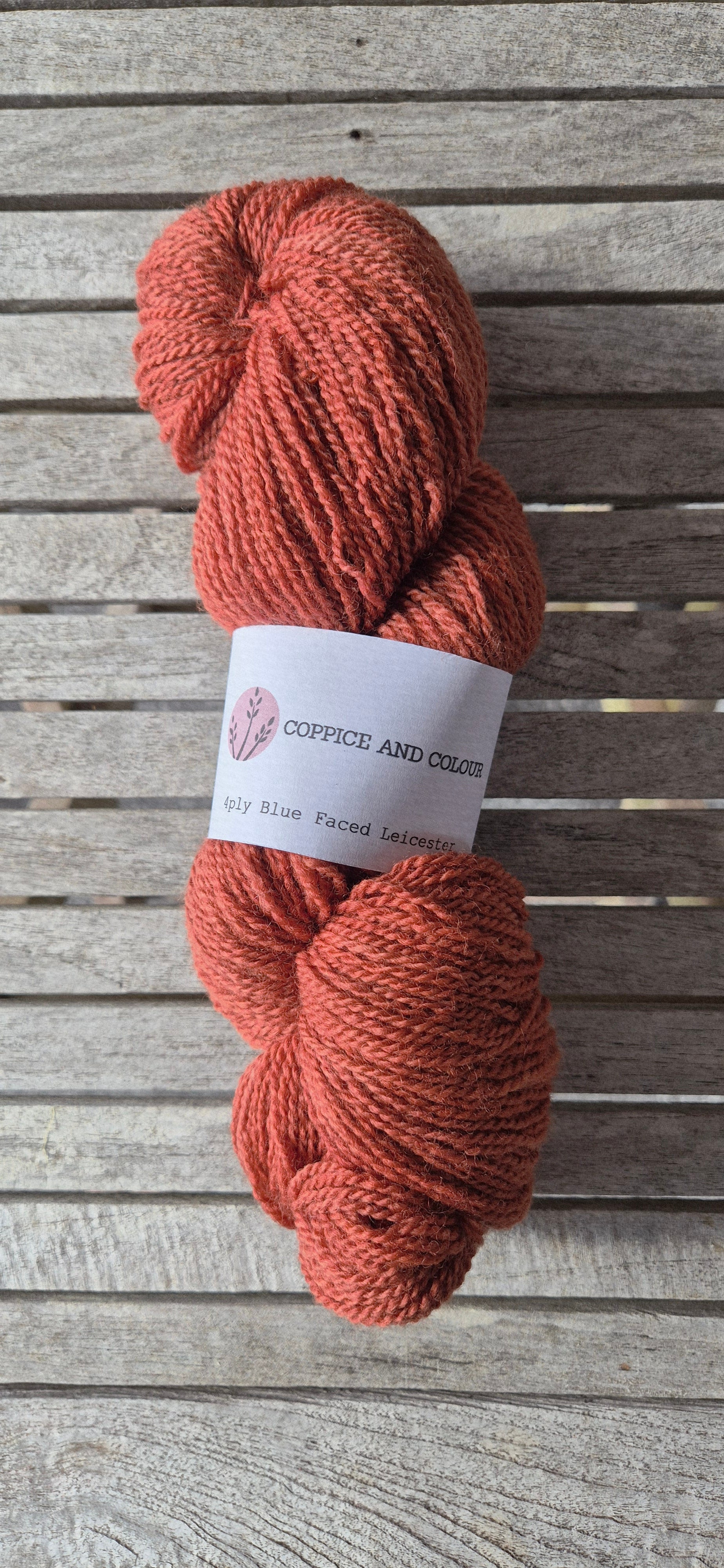 This yarn colourway contains hints of rust, brick red, rose, glowing ember, spiced ochre and iron oxide.