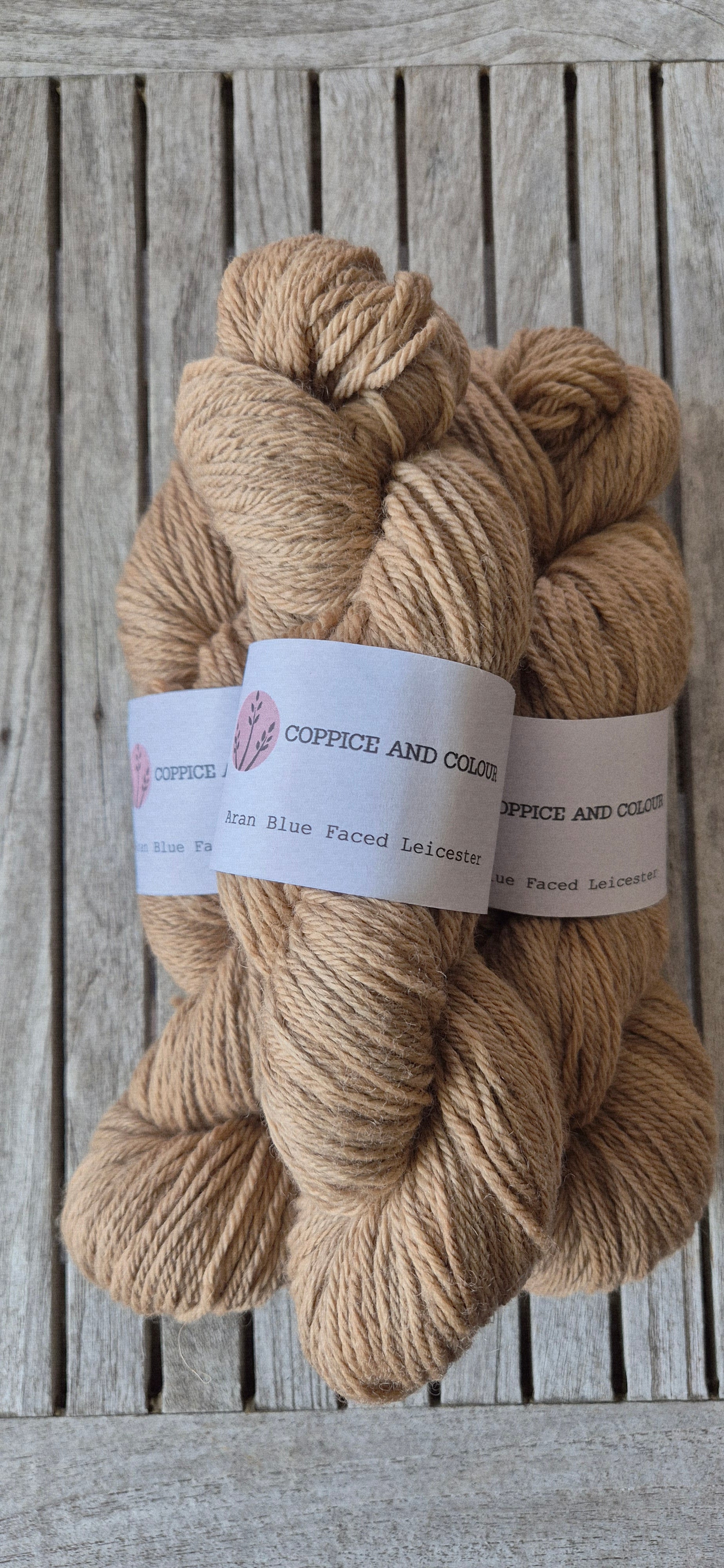 Our aran Blue Faced Leicester yarn is a beautifully smooth, drapey, soft yarn from a classic British breed.