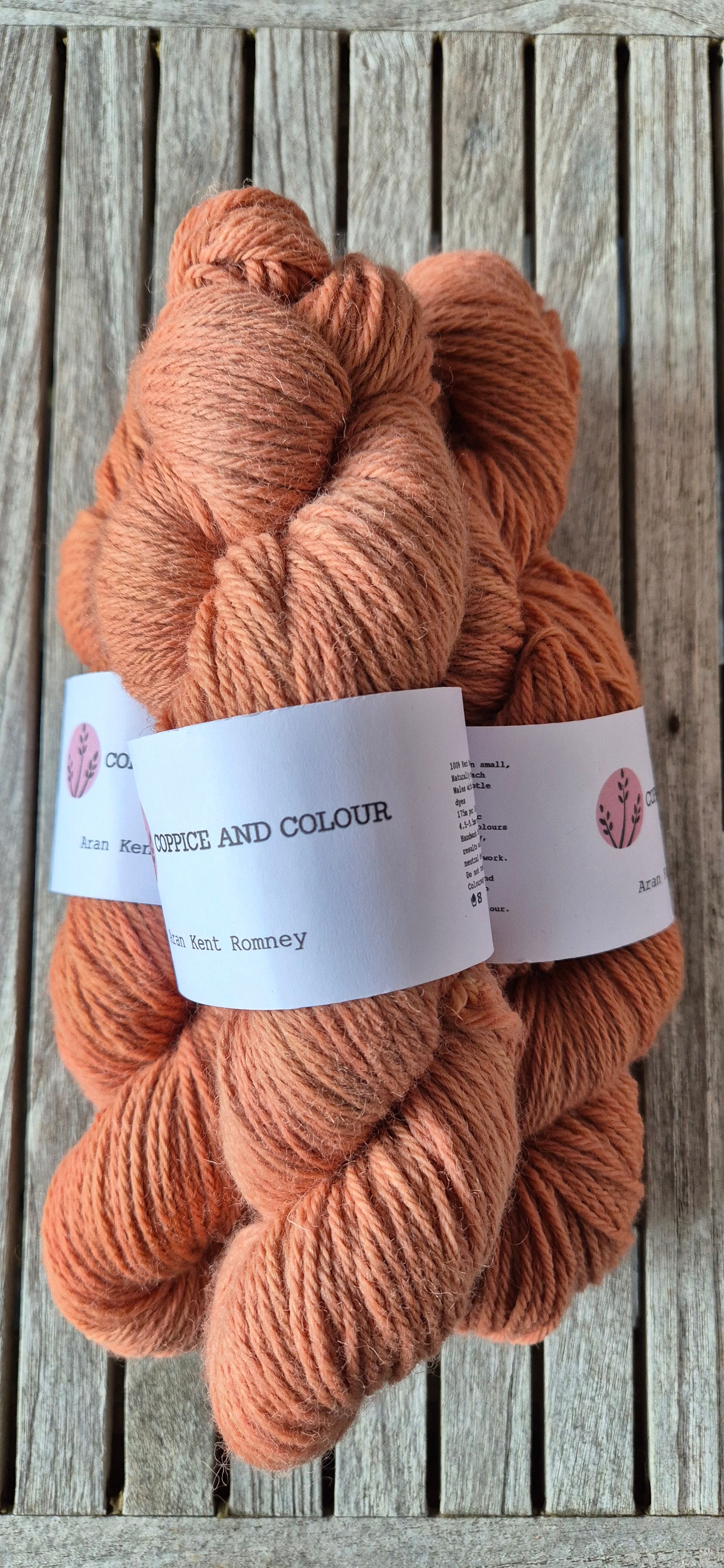 Our aran Kent Romney yarn is a beautifully bouncy, resilient and soft yarn from a classic British breed.