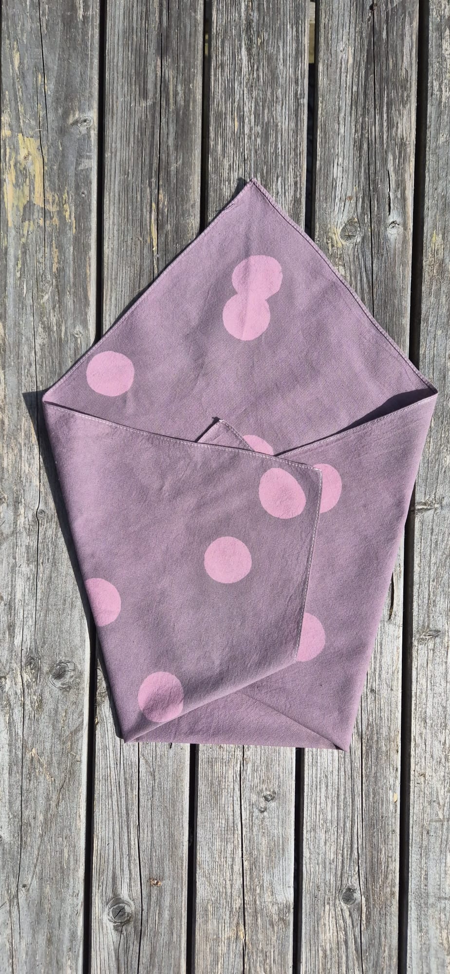 100% cotton bandana, naturally dyed using plant materials. Size approx 55cm x 55cm