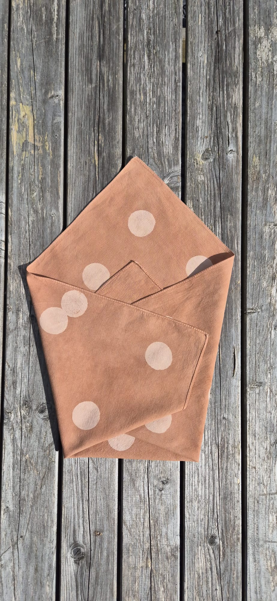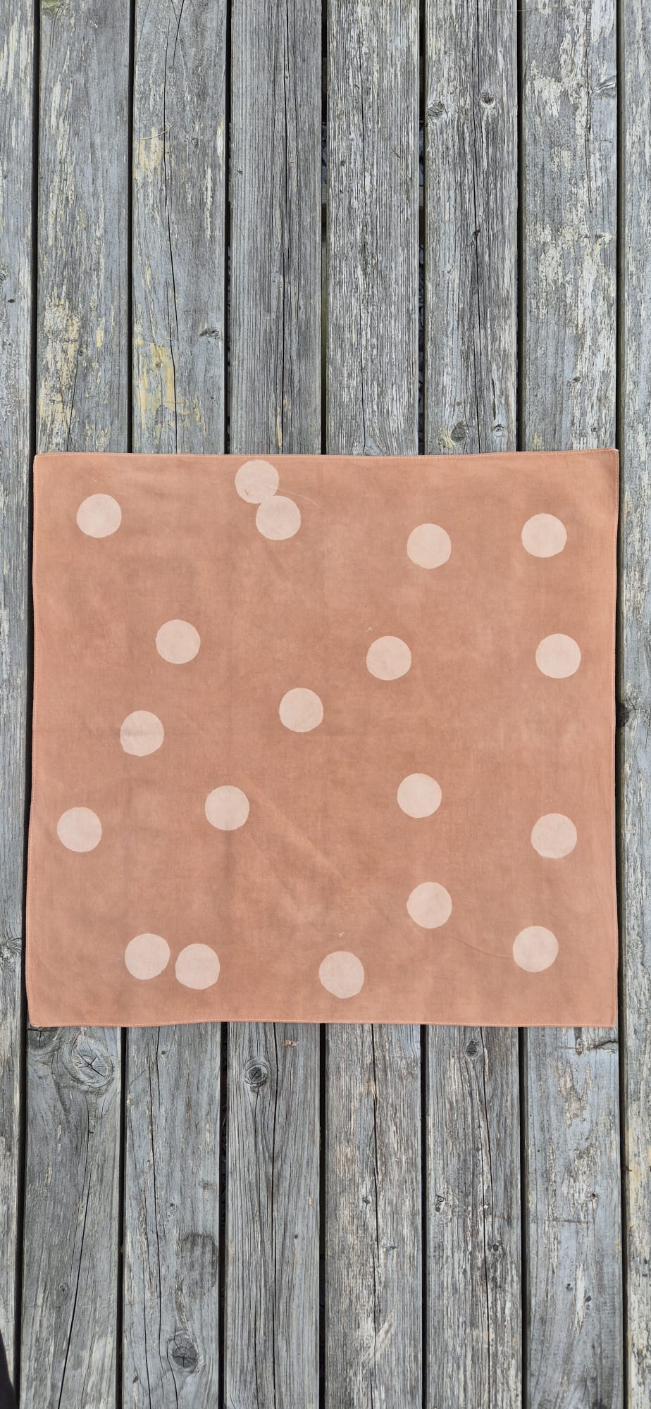 Brown- please note - over time the colour in the circles may fade, leaving just the background. This is an expected result of this form of dyeing and is not considered a product flaw. The bandana will age and change over time.