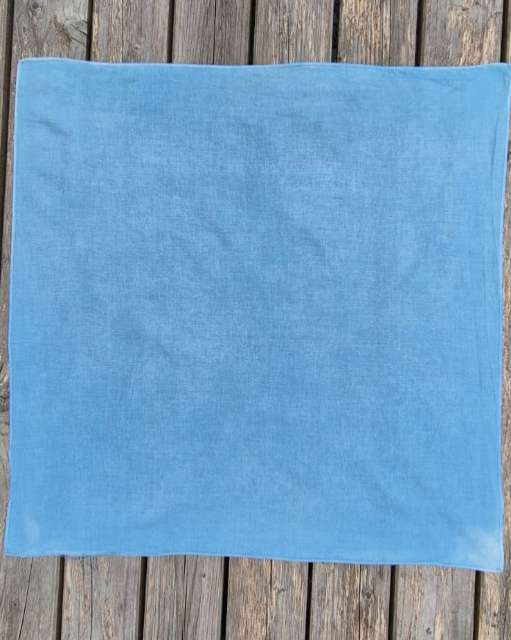 100% cotton bandana, naturally dyed using indigo. Size approx 55cm x 55cm